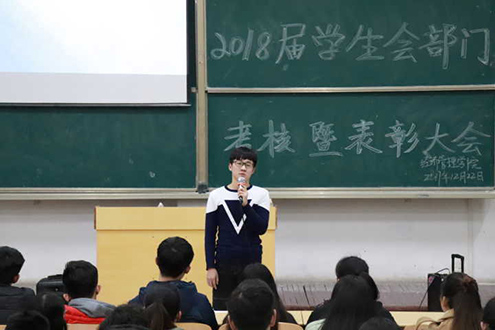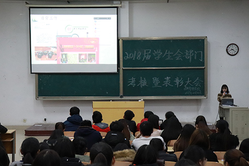 12月22日晚7时,qy球友会在六号教学楼207室举办2018届学生会部门考核暨表彰大会,qy球友会学生会全体成员参与,活动现场300余人。