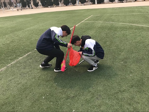 活动伊始,由青年志愿者协会成员对学生志愿者进行分组分工。活动负责人点名、分发工具后带至活动地点,各个小组按照计划实施清扫工作。对足球场、篮球场、操场及操场观众席进行大面积清扫,对于操场上的大小石块、白色垃圾及操场绿化带旁边的杂草进行重点清理,并将垃圾运回垃圾回收站。最后,活动负责人对活动做出总结,对于表现突出的小组和个人给予表扬。