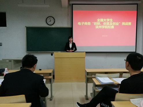 4月27日晚6时30分,qy球友会于7号教学楼309室参加全国大学生电子商务“创新、创意及创业”挑战赛滨州学院校赛。qy球友会副院长王春晖、生物与环境工程学院团总支书记赵望锋、我院山东省电子商务促进会特聘专家刘国光、电子商务与品牌管理方向博士李存超、创新管理方向博士张敏担任本次挑战赛评委,比赛现场近50人。