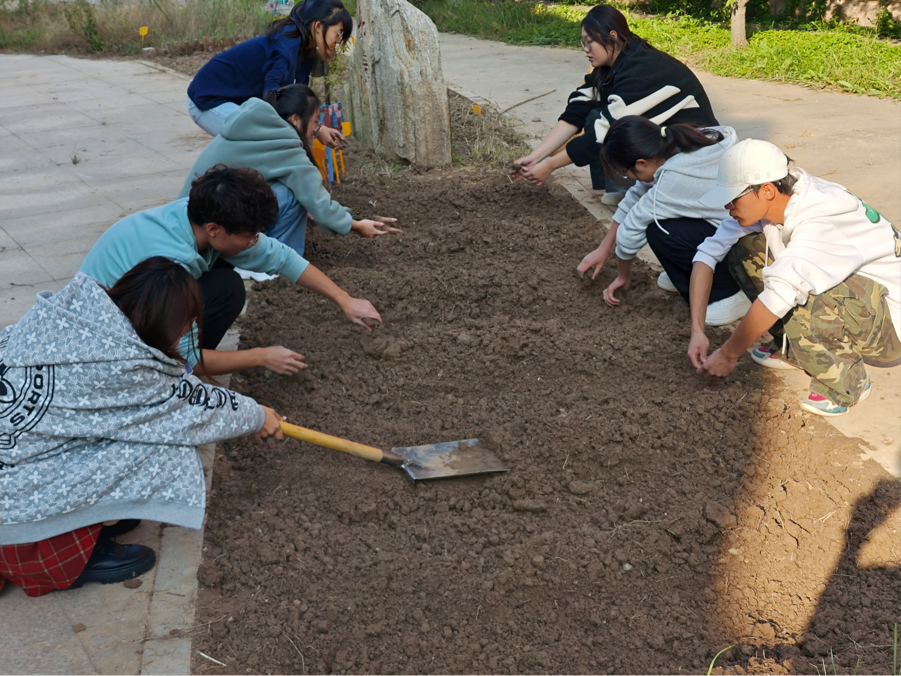 为充分发挥劳动教育的重要作用,促进大学生心理健康发展,深化 “经彩青春” 大思政课的实践育人内涵,10 月 19 日、21 日下午,qy球友会在学校如意园 “心翼经航田” 开展 “劳以健体,动益身心,播种希望,守望成长”种植活动,心理辅导站全体成员、25 级学生代表共同参与。