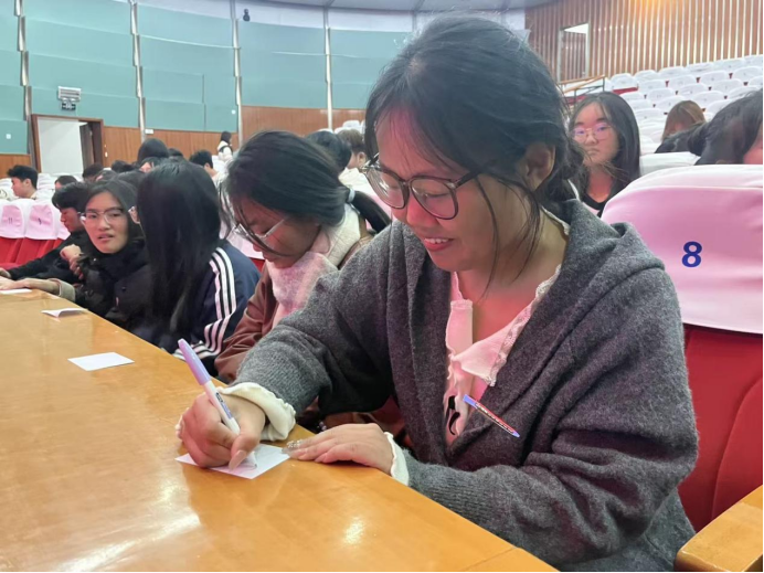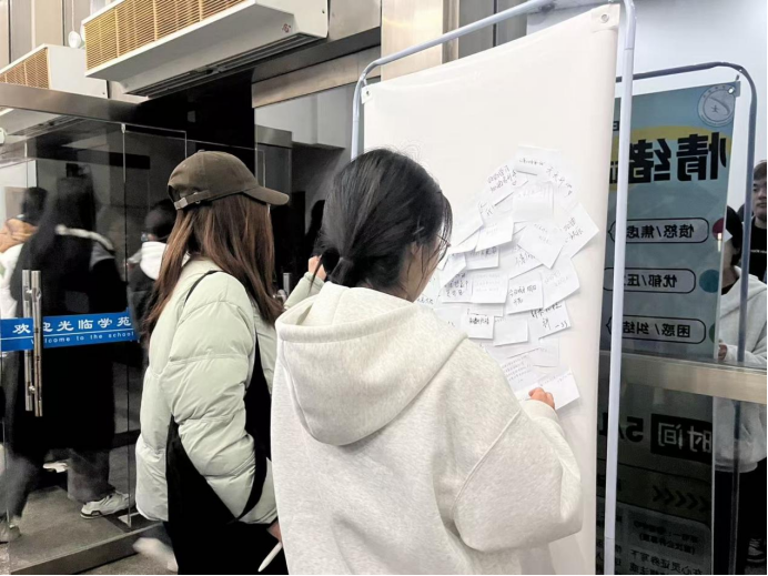 活动伊始,同学们共同观赏电影《深海》,沉浸于一场视觉与心灵的双重体验。影片落幕之后,随即展开“心理互动分享”环节,同学们围绕“如何与负面情绪和解”“亲情中的理解与包容”等话题积极发言,在真诚交流中交换成长困惑、传递温暖共鸣,进一步深化对影片主题的认知。活动尾声,开展了“心灵回响”便签留言环节,同学们将观影后内心的触动、生活中的“微光时刻”认真书写在便签上,一张张承载心声的便签贴满展示板,汇聚成一道温暖的“心声墙”,让“你并不孤单”的信念在无声中传递,也让整场活动在治愈且充满力量的氛围中推进。