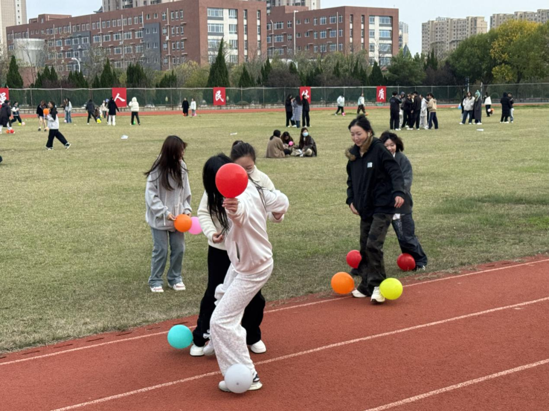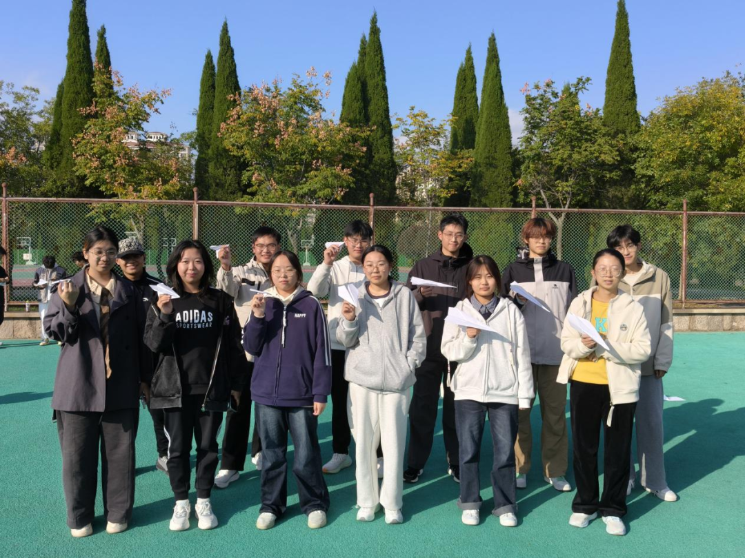 活动现场,小足球场与大操场分别开展了丰富的互动项目。“背对背拥抱”游戏中,同学们两人一组夹球前行,考验彼此的默契与信任;“踩气球”环节,大家相互配合,保护自身气球的同时要踩破他人气球,现场氛围热烈;“找啊找朋友”助力同学们结识新伙伴,拉近彼此距离;“折纸飞机”时,同学们将心愿或烦恼写于纸飞机上并一同放飞;“衔纸杯传水”需要小组密切协作,在趣味比拼中强化团队意识。不同场地活动各有特点,“凝心聚力”的氛围在校园中充分体现。