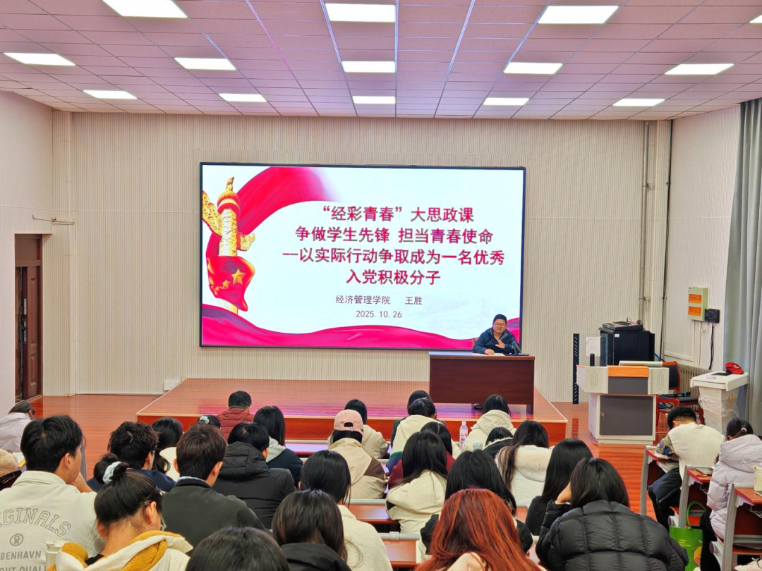 为进一步引导广大学生以实际行动向党组织靠拢,10月26日,qy球友会于2教310会议室开展“经彩青春”大思政课,qy球友会团总支书记、学生科长王胜主讲,2025年下半年全体入党积极分子参加会议。