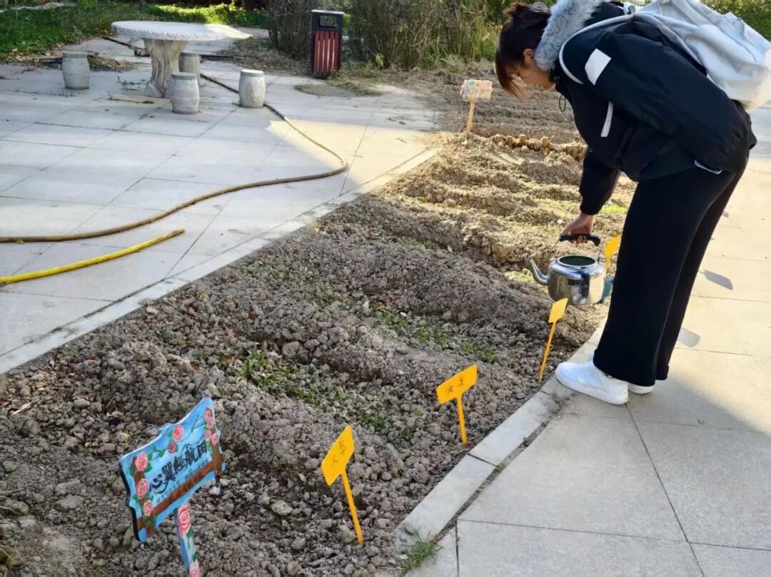 此前活动第一阶段的开垦、播种已顺利完成,目前正式进入轮班管护阶段。学院心理辅导站成员联合2025级学生代表实行轮班值守机制,细化每日管护任务清单。同学们分工有序,认真照看每一株萌发的嫩芽,在“躬耕一亩田”的体验中厚植责任担当的精神底色,感悟“久久为功”的价值逻辑。