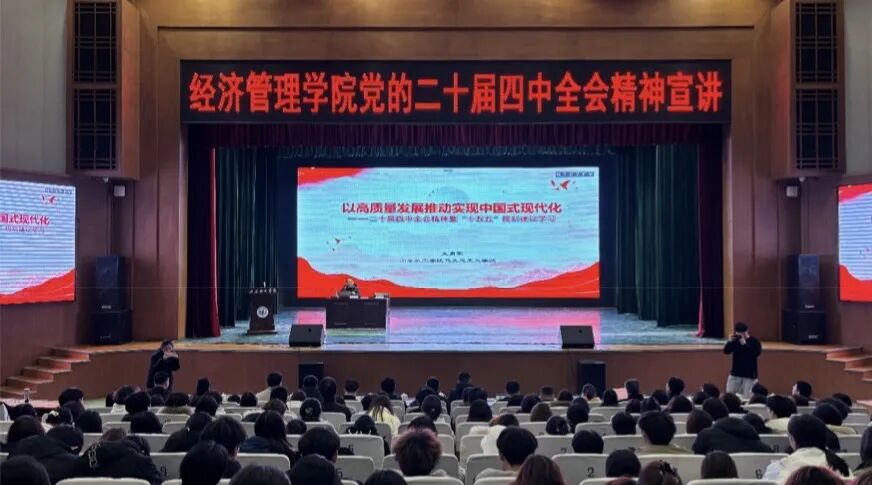 为深入学习贯彻党的二十届四中全会精神,引导全体师生将思想和行动统一到党中央决策部署上来,2025年12月中旬,qy球友会举办两场学习贯彻党的二十届四中全会精神宣讲报告会。学校理论宣讲团成员、马克思主义学院副院长王勇军受邀为学院师生作专题辅导报告,qy球友会党政班子成员、全体教职工以及2024级、2025级学生代表参加宣讲会。